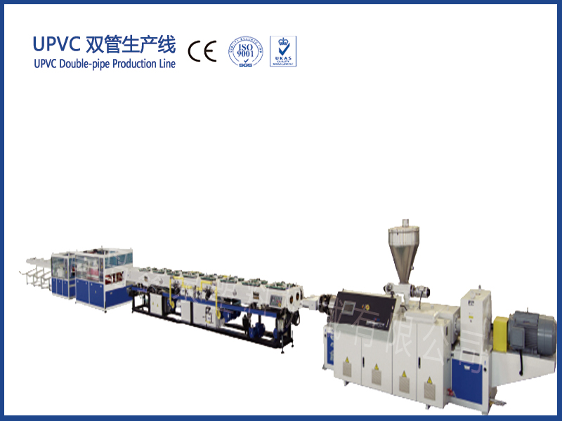 雙管擠出生產(chǎn)線是一種能夠同時生產(chǎn)兩根塑料管材的成套設(shè)備,主要用于高效生產(chǎn)相同或不同規(guī)格的塑料管材(如 PVC、PE、PP 等)。該生產(chǎn)線通過優(yōu)化擠出機頭、模具及后續(xù)處理系統(tǒng),實現(xiàn)雙管同步擠出、冷卻、牽引和切割,顯著提升生產(chǎn)效率,降低能耗和人工成本。UPVC雙管擠出生產(chǎn)線生產(chǎn)的產(chǎn)品主要應(yīng)用于建筑穿線管,電工管等,一流的品質(zhì)融進了多年經(jīng)驗, 主機采用錐形雙螺桿擠出機,提高混煉效果,擠出壓力高。雙管擠出模具。生產(chǎn)效率高,成型穩(wěn)定。采用雙管真空定徑技術(shù),噴淋冷卻,確保管材質(zhì)量。獨立控制的整體結(jié)構(gòu)的雙管牽引機構(gòu)和同步切割裝置。設(shè)備緊湊,占地面小。